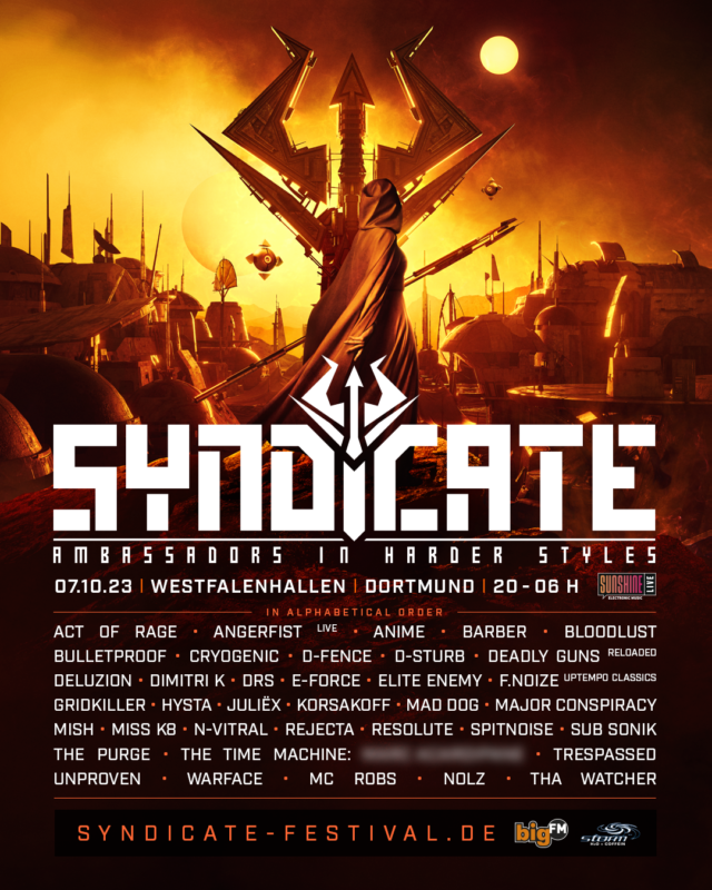 Ambasadorzy hard-style’u, Syndicate, to niemiecka przystań dla wszystkich gatunków po twardszej stronie muzyki elektronicznej. Ogromna hala widowiskowa Westfalenhallen w Dortmundzie otwiera swoje hardcorowe podwoje na jedną nocną imprezę.